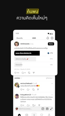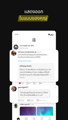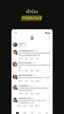 Threads ขอเชิญคุณเข้าสู่โลกแห่งการสนทนาที่ไม่รู้จบ ที่ซึ่งทุกความคิดเห็นมีความหมาย และทุกความสนใจสามารถค้นพบคอมมูนิตี้ของตัวเอง ไม่ว่าคุณจะต้องการแบ่งปันมุมมองที่ไม่เหมือนใคร ค้นพบแรงบันดาลใจใหม่ๆ หรือเชื่อมต่อกับครีเอเตอร์ที่คุณชื่นชอบ Threads คือพื้นที่ที่ออกแบบมาเพื่อจุดประกายการมีส่วนร่วมและสร้างความผูกพันผ่านถ้อยคำ เตรียมพร้อมสำหรับประสบการณ์ที่ลึกซึ้งกว่าเดิมในการสำรวจหัวข้อที่คุณหลงใหล และก้าวทันทุกกระแสที่จะมาถึง