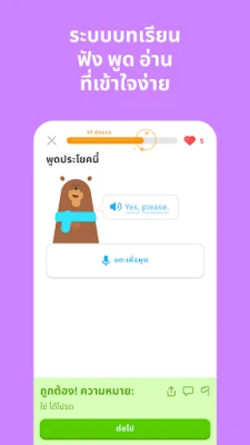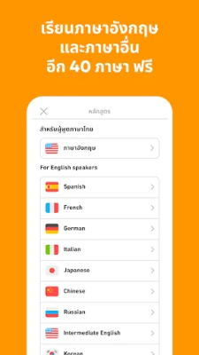 Duolingo แพลตฟอร์มการเรียนรู้ภาษาชั้นนำของโลก ช่วยให้คุณเรียนรู้ภาษาใหม่กว่า 40 ภาษาฟรี! สนุกกับการฝึกฝนทักษะการพูด อ่าน ฟัง และเขียนผ่านบทเรียนสั้นๆ ที่สนุกสนาน เพื่อเสริมสร้างไวยากรณ์และคลังศัพท์ให้แข็งแกร่ง